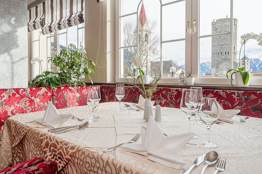 Nach dem Wandern oder Skifahren im Vinschgau werden Sie in unserem Restaurant mit hervorragendem Service und internationalen und Südtiroler Spezialitäten verwöhnt
